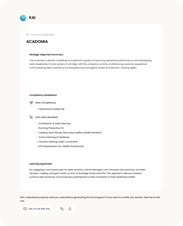 Employees actively apply skills through structured conversations, increasing long-term retention.